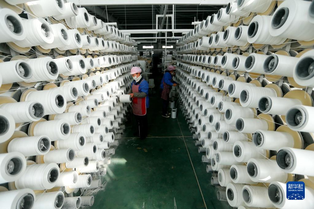 11月24日,青島市即墨區一家篷布生產(chǎn)企業(yè)的工人在織布車(chē)間忙碌。