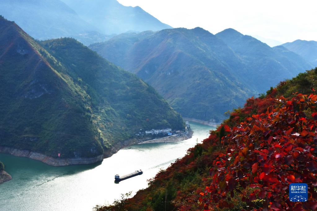 11月24日,輪船航行在紅葉映襯下的長(cháng)江巫峽水域。