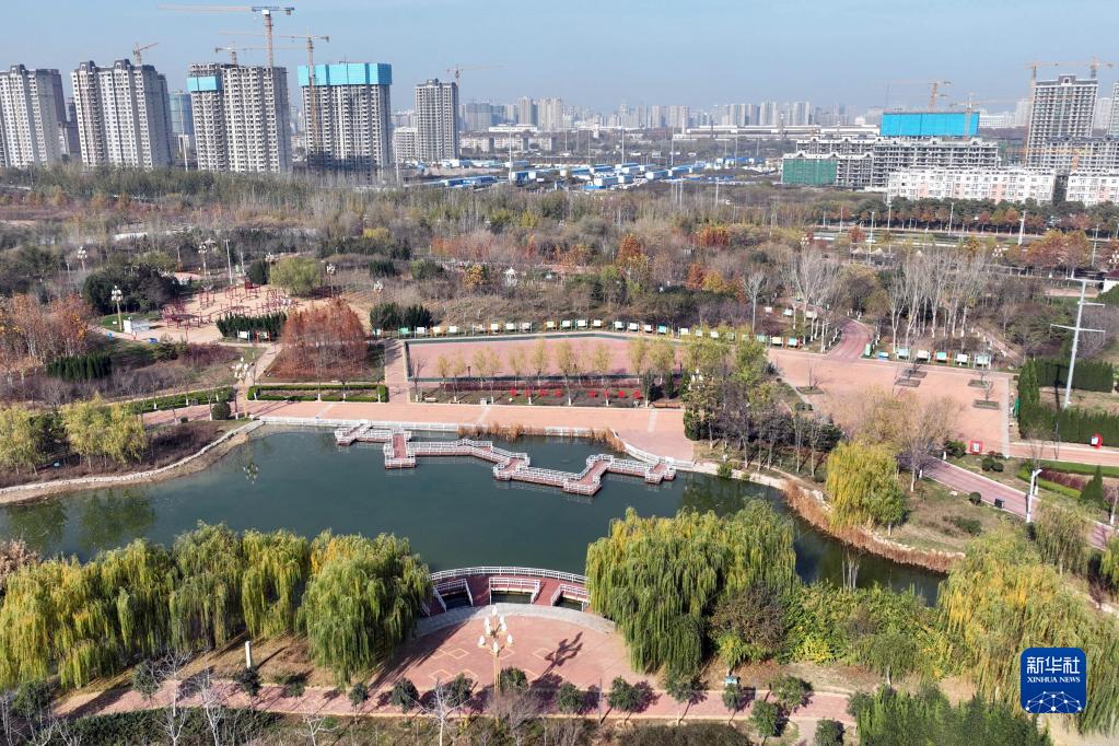 這是11月25日拍攝的邢臺市七里河及周邊景色(無(wú)人機照片)。