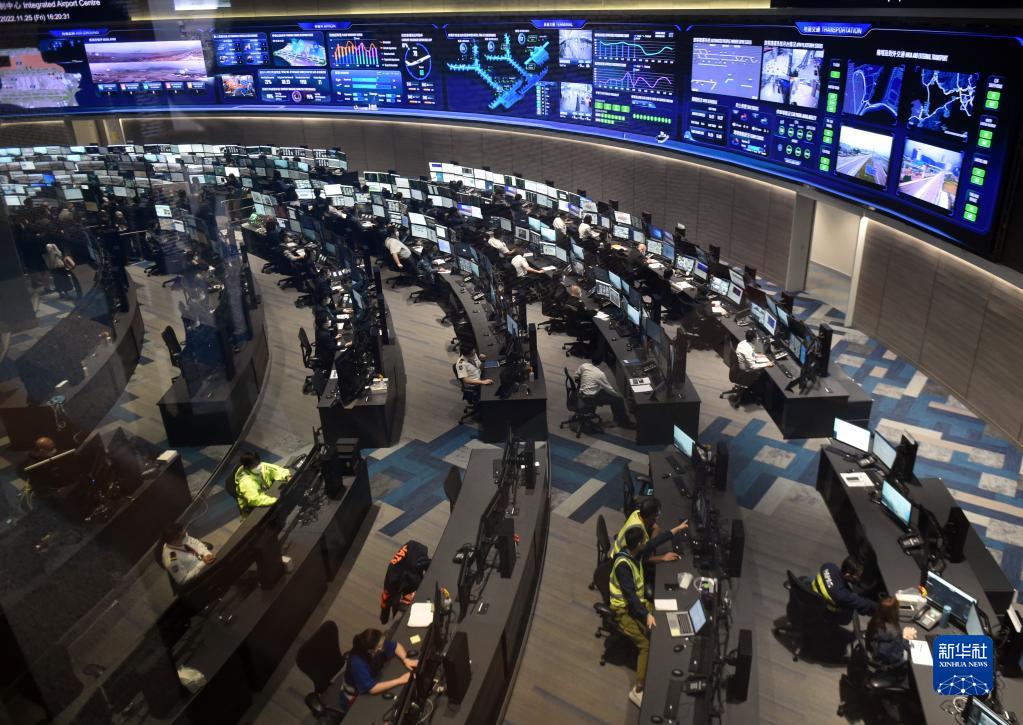 11月25日,在香港國際機場(chǎng)中央控制中心,工作人員觀(guān)看航班運作情況。新華社記者 盧炳輝 攝