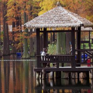 近日,上海青西郊野公園“水上森林”的水杉、池杉、落羽杉等枝頭盡染,風(fēng)景如畫(huà)。