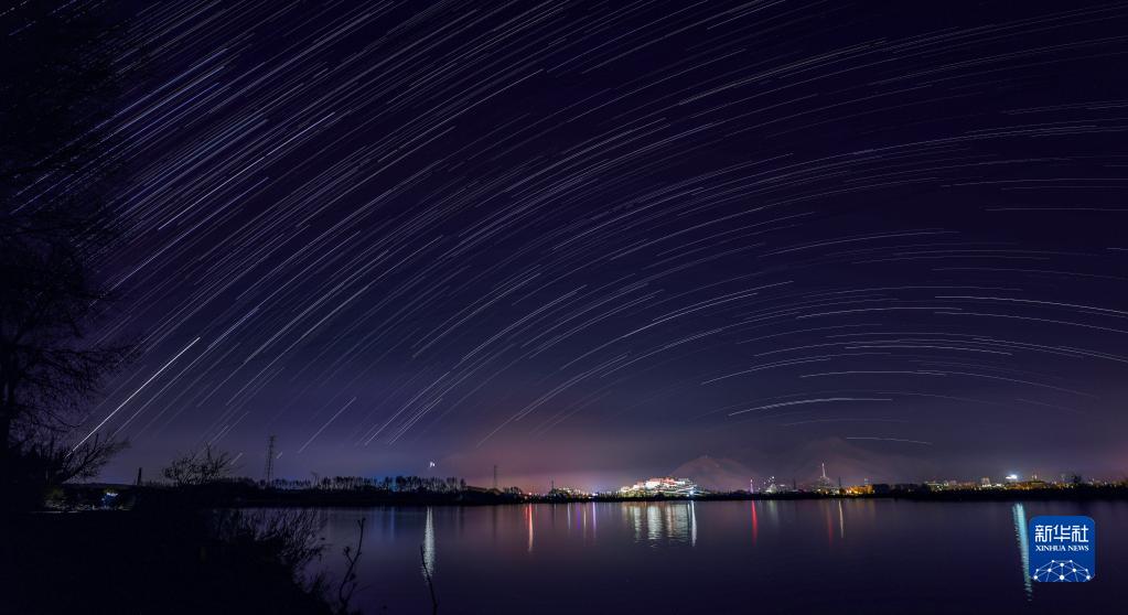 這是在拉薩市拉魯濕地拍攝的以布達拉宮為前景的星軌照片(合成照片,11月26日攝)。