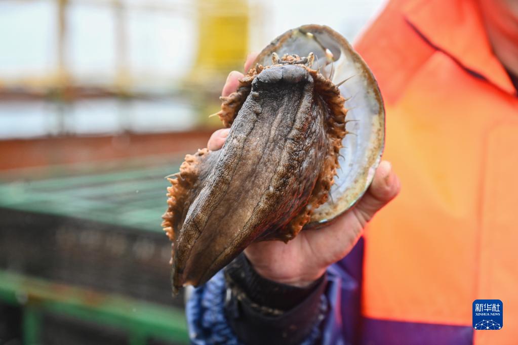 這是11月25日在福州連江縣苔菉鎮后灣海域拍攝的運輸船上裝載的鮑魚(yú)。