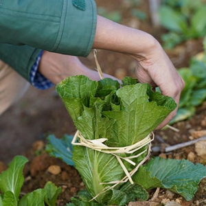 11月24日,鄭濤在蔬菜基地捆扎蔬菜。