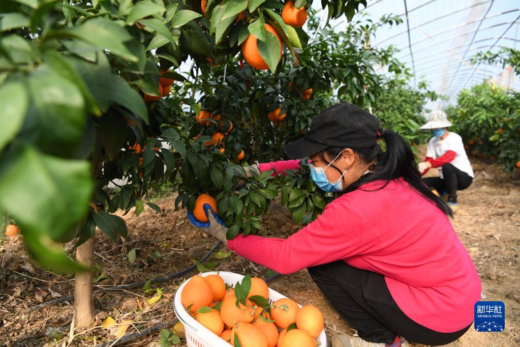 11月26日,村民在肥西縣銘傳鄉王井社區特色蔬果產(chǎn)業(yè)園內采摘“紅美人”柑橘。
