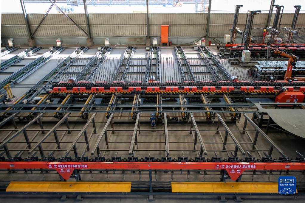 位于四川會(huì )理的沿江高速“智慧梁廠(chǎng)”由蜀道集團投建,主要生產(chǎn)高速公路橋梁建造所需的T梁。記者近日走進(jìn)“智慧梁廠(chǎng)”看到,車(chē)間生產(chǎn)線(xiàn)上智能數控設備取代了大量人工作業(yè),提升生產(chǎn)效率的同時(shí)也增強了車(chē)間生產(chǎn)的安全性?!爸腔哿簭S(chǎng)”積極探索綠色低碳生產(chǎn)模式,充分利用當地光熱資源,利用太陽(yáng)能對廠(chǎng)內設施設備充電儲能,助力生產(chǎn)。