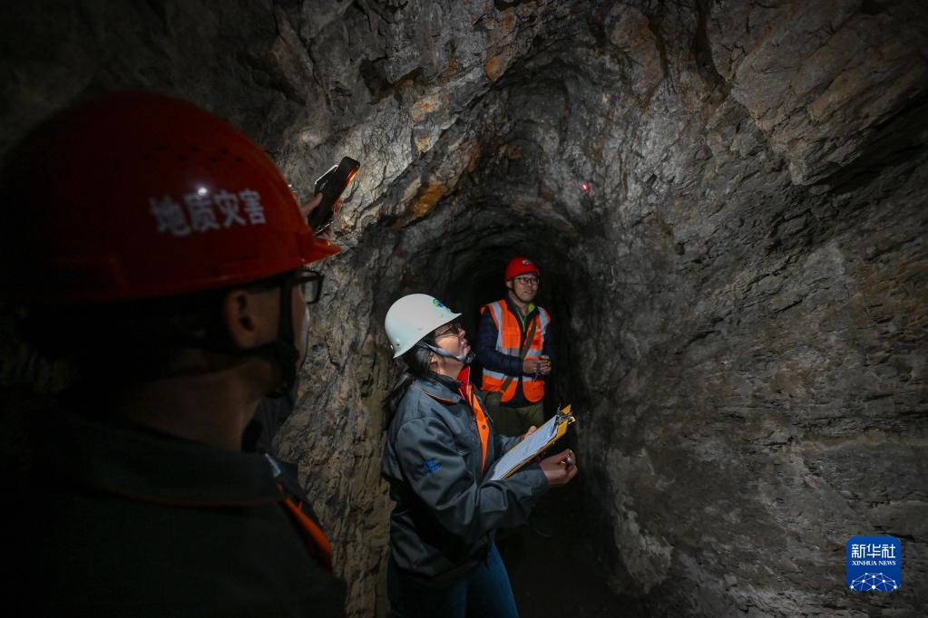 天津華北地質(zhì)勘查局地災防治工作組成員在天津市薊州區一處廢棄礦洞里實(shí)地踏勘(11月25日攝)。