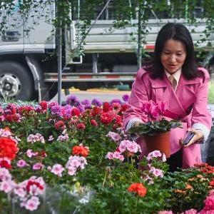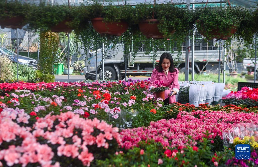 11月28日,在金華市金東區澧浦花木城的花藝苗圃?xún)?,游客在選購花卉。