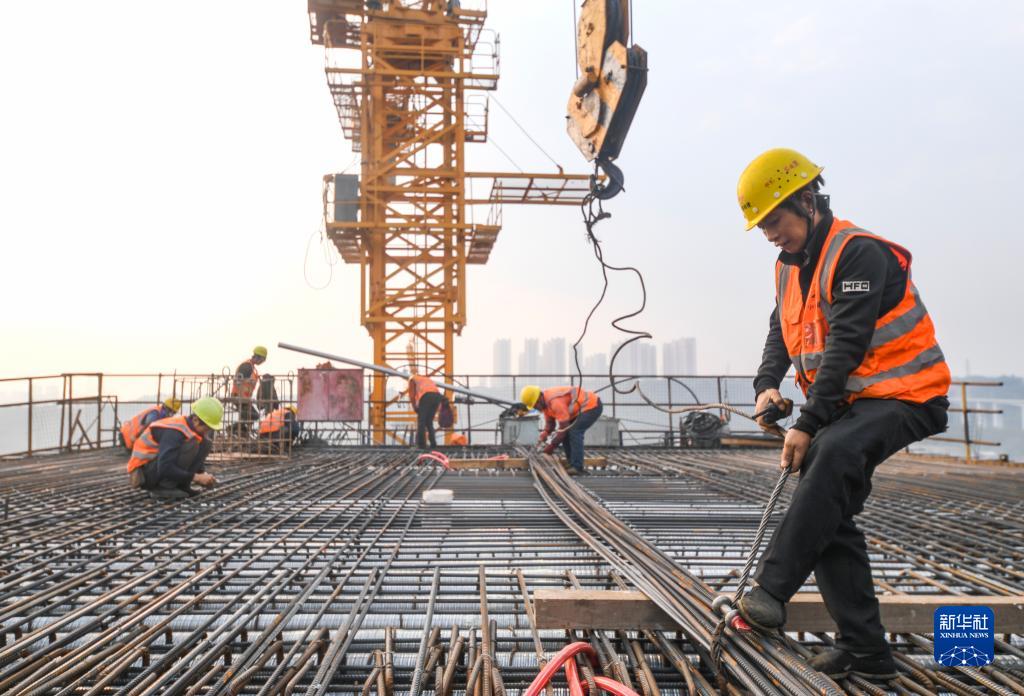 11月28日,工人在渝昆高鐵川渝段華福特大橋施工現場(chǎng)作業(yè)。