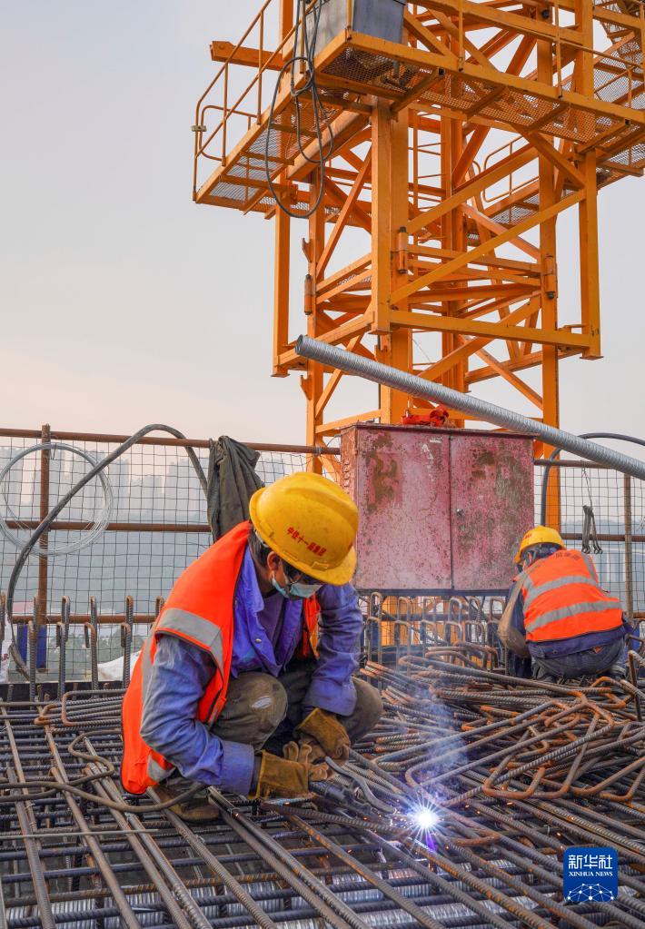 11月28日,工人在渝昆高鐵川渝段華福特大橋施工現場(chǎng)作業(yè)。