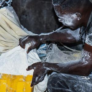 木薯是喀麥隆百姓重要的傳統糧食作物。成熟的木薯塊根經(jīng)過(guò)清洗、削皮、切碎,再放入水中發(fā)酵,根據發(fā)酵時(shí)間的不同,木薯碎根可以制成不同的衍生品,比如木薯棒和木薯“古斯古斯”。