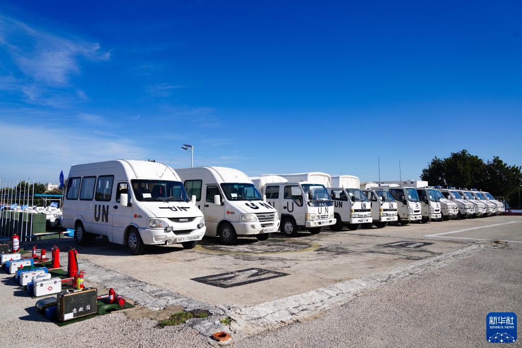 這是11月28日在黎巴嫩南部辛尼亞村的中國維和部隊營(yíng)區拍攝的待檢查車(chē)輛。