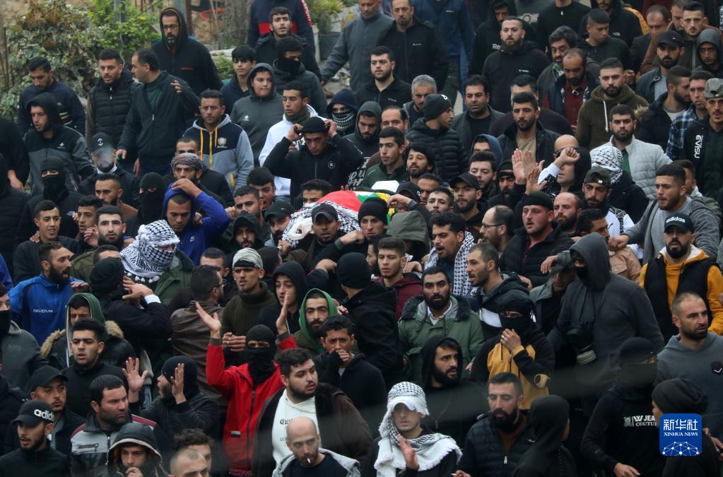 11月29日,在約旦河西岸城市希伯倫北部的拜特烏邁爾,人們?yōu)楸灰陨熊婈牬蛩赖陌屠账固谷怂驮?。新華社發(fā)(馬蒙·沃茲沃茲攝)