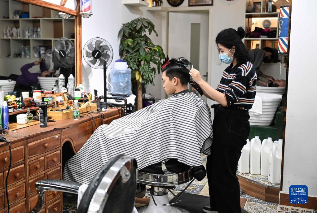 12月1日,在廣州市荔灣區廣鋼新城,一家理發(fā)店恢復營(yíng)業(yè)。