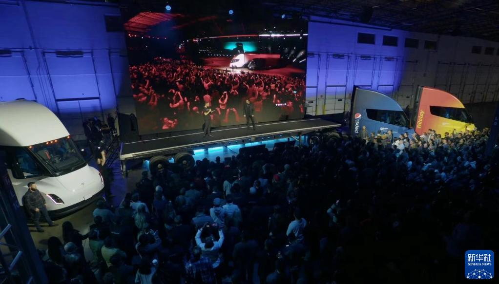 美國特斯拉公司1日在位于內華達州的超級工廠(chǎng)舉行儀式,向百事可樂(lè )公司交付了首批電動(dòng)卡車(chē)Semi。