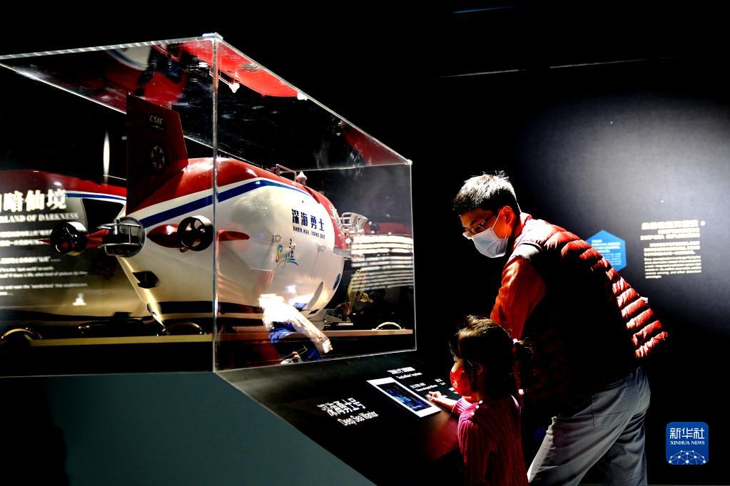 12月3日,觀(guān)眾在“深海園林”展上參觀(guān)深潛器。新華社記者 張建松 攝