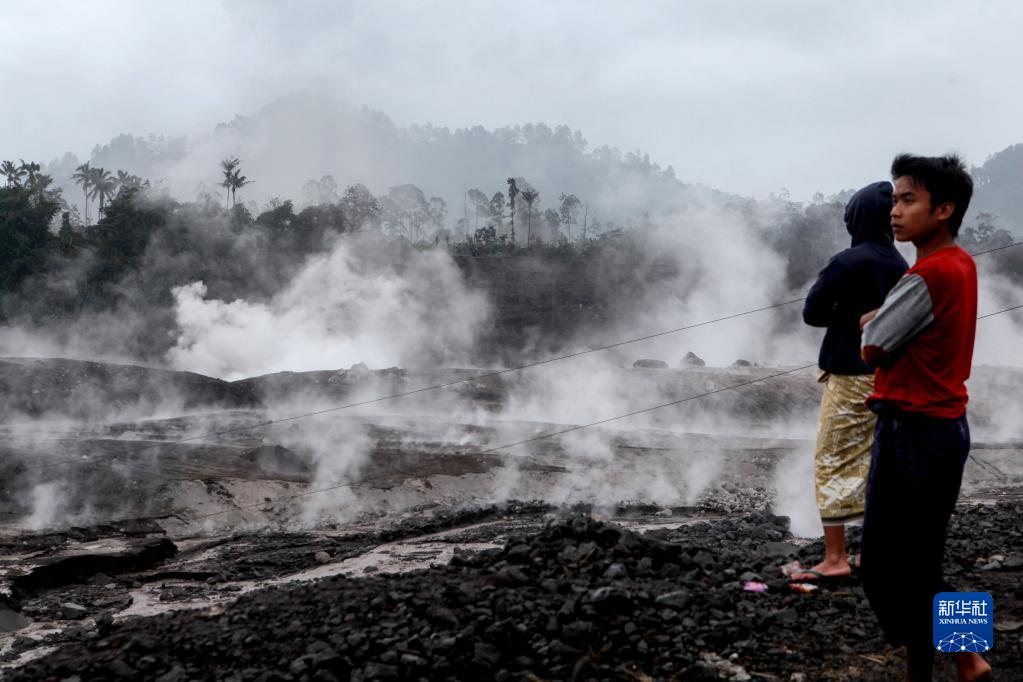 12月4日,在印度尼西亞?wèn)|爪哇省盧馬姜的薩皮圖朗村,人們查看塞梅魯火山噴發(fā)后影響的區域。