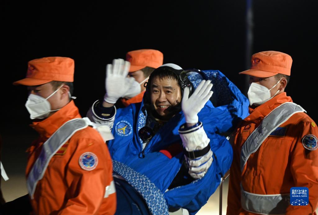12月4日,神舟十四號載人飛船返回艙在東風(fēng)著(zhù)陸場(chǎng)成功著(zhù)陸。這是航天員陳冬安全順利出艙。新華社記者 連振 攝