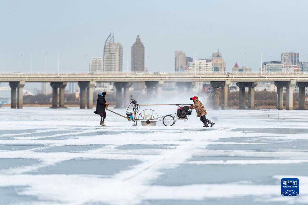 目前,“冰城”哈爾濱市已進(jìn)入“采冰季”。工人從封凍的松花江采冰,并將冰塊運往哈爾濱市的重要景點(diǎn)等地,用于冰雪景觀(guān)的搭建制作。