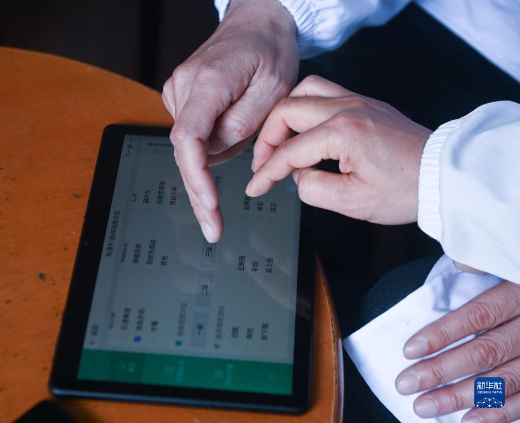 12月7日,岱山縣岱山醫療健康集團的醫生拿著(zhù)數字化設備到高亭鎮沙涂社區為行動(dòng)不便的居民辦理殘疾評定。殘疾人證將在完成評定的五個(gè)工作日后送到申請人手里。