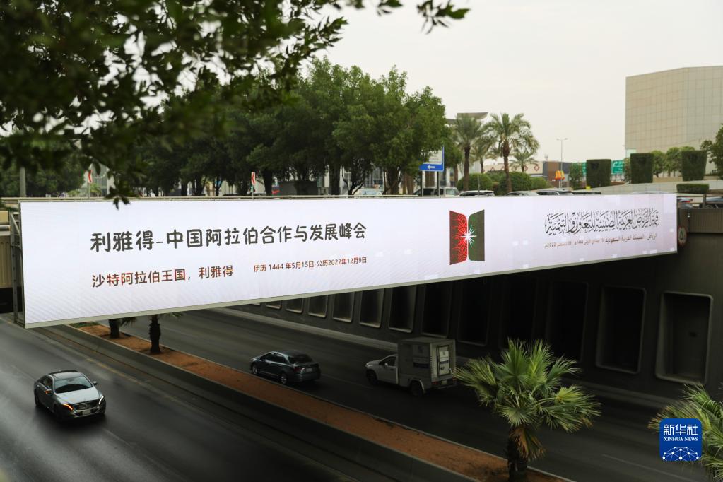 這是12月7日在沙特阿拉伯首都利雅得街頭拍攝的關(guān)于“中國-阿拉伯國家峰會(huì )”的宣傳屏。