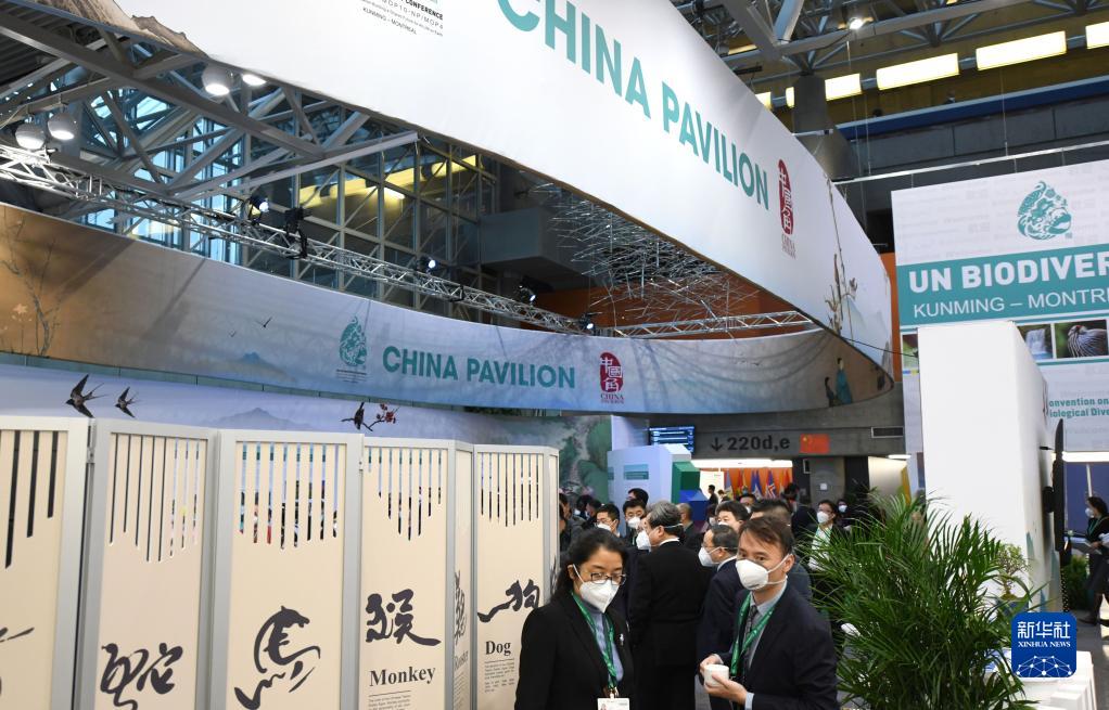 12月7日,與會(huì )者在加拿大蒙特利爾《生物多樣性公約》第十五次締約方大會(huì )(COP15)第二階段會(huì )議中國角參觀(guān)。