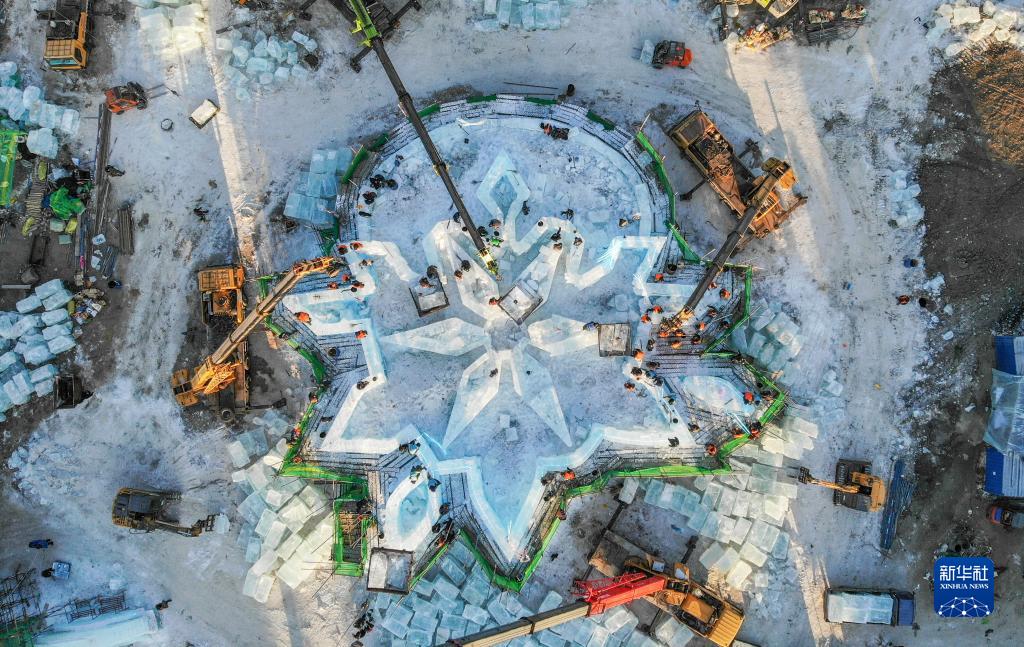哈爾濱冰雪大世界冰建施工總體進(jìn)度過(guò)半
