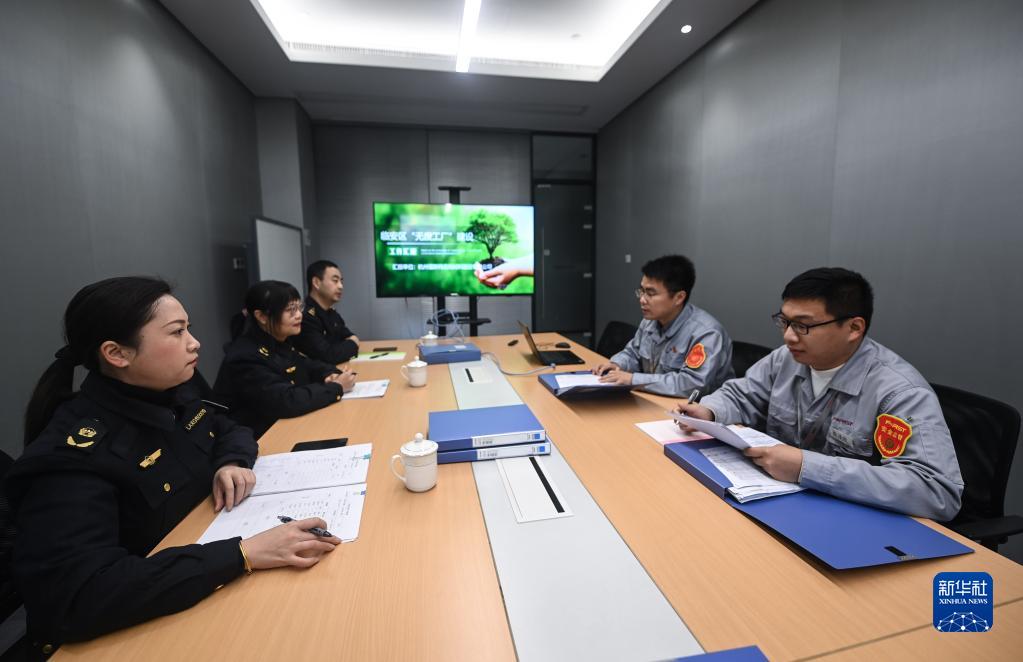 12月9日,在位于杭州市臨安區的杭州福斯特應用材料股份有限公司,杭州市生態(tài)環(huán)境局臨安分局黨員志愿“三服務(wù)”小分隊進(jìn)行企業(yè)走訪(fǎng),為企業(yè)節能減排、打造“無(wú)廢工廠(chǎng)”提供建議。新華社記者 徐昱 攝