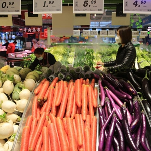 12月9日,顧客在江蘇省無(wú)錫市一家超市內選購蔬菜。