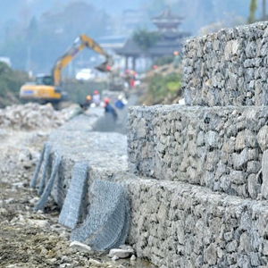 12月9日,工人在湖北省宣恩縣椒園鎮水田壩村修建河堤。