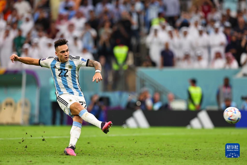 12月9日,阿根廷隊球員勞塔羅·馬丁內斯在點(diǎn)球大戰中主罰點(diǎn)球得分。