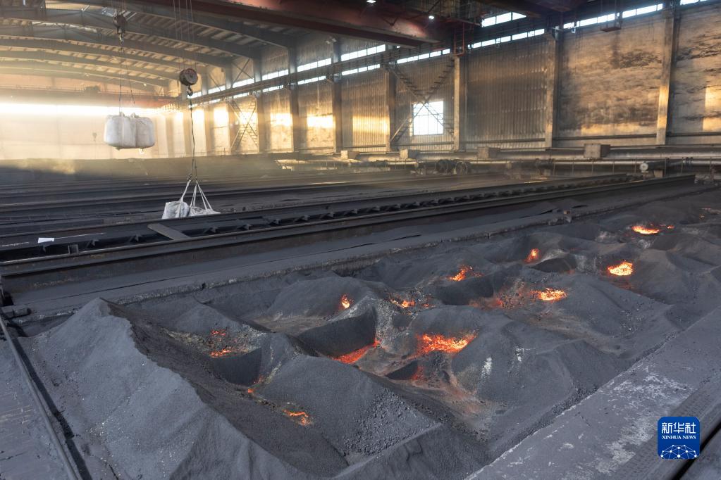 這是12月8日在位于鶴崗市的黑龍江海達新材料科技有限公司車(chē)間內拍攝的鋰離子電池負極材料的石墨化工序。