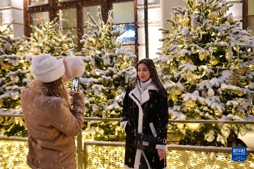 12月10日,在俄羅斯莫斯科,一名女子在雪中留影。