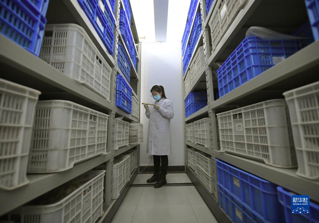 李彥楨在河南省文物考古研究院的標本庫內觀(guān)察肢骨(11月30日攝)。