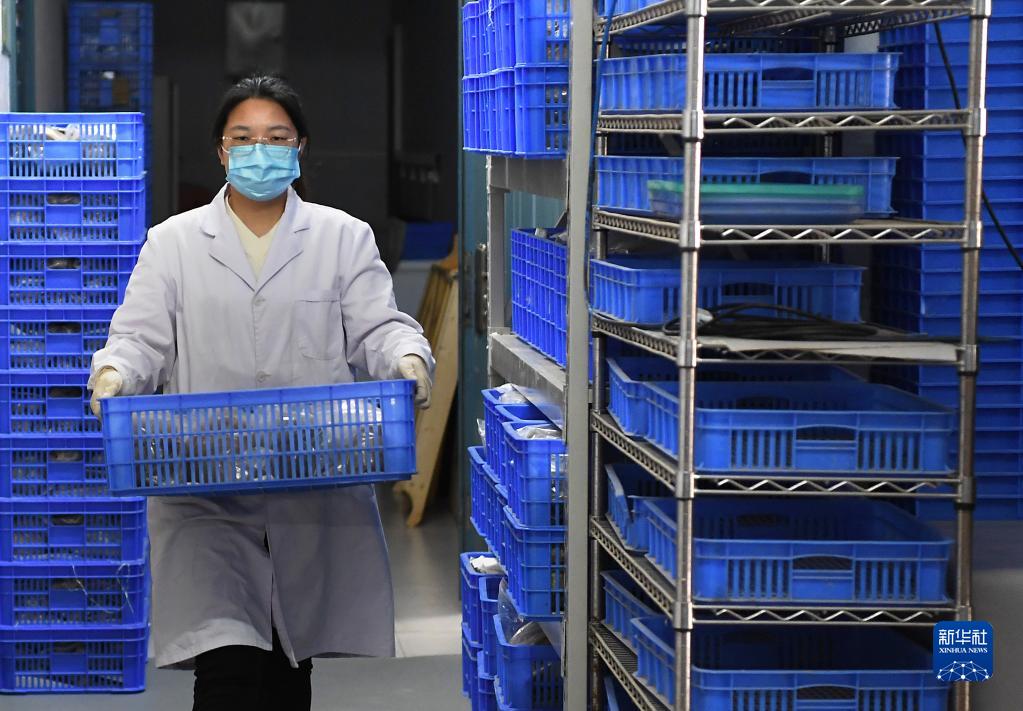 在河南省文物考古研究院,李彥楨拿著(zhù)骸骨標本去往標本庫(11月30日攝)。