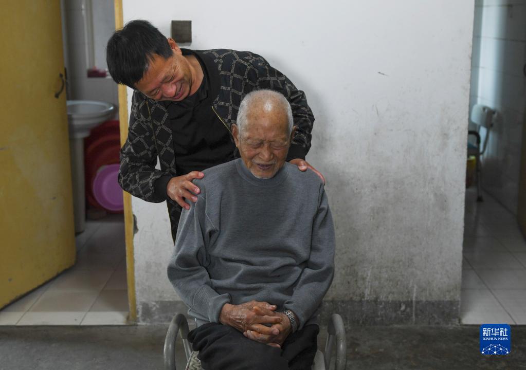 小兒子高鏡明在給高恒發(fā)按摩(5月15日攝)。