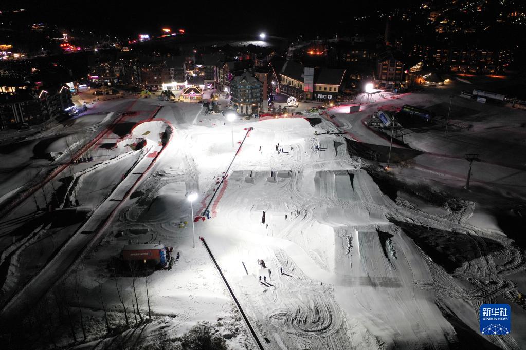 V-PARK地形公園團隊成員進(jìn)行公園修建工作(無(wú)人機照片,12月9日攝)。
