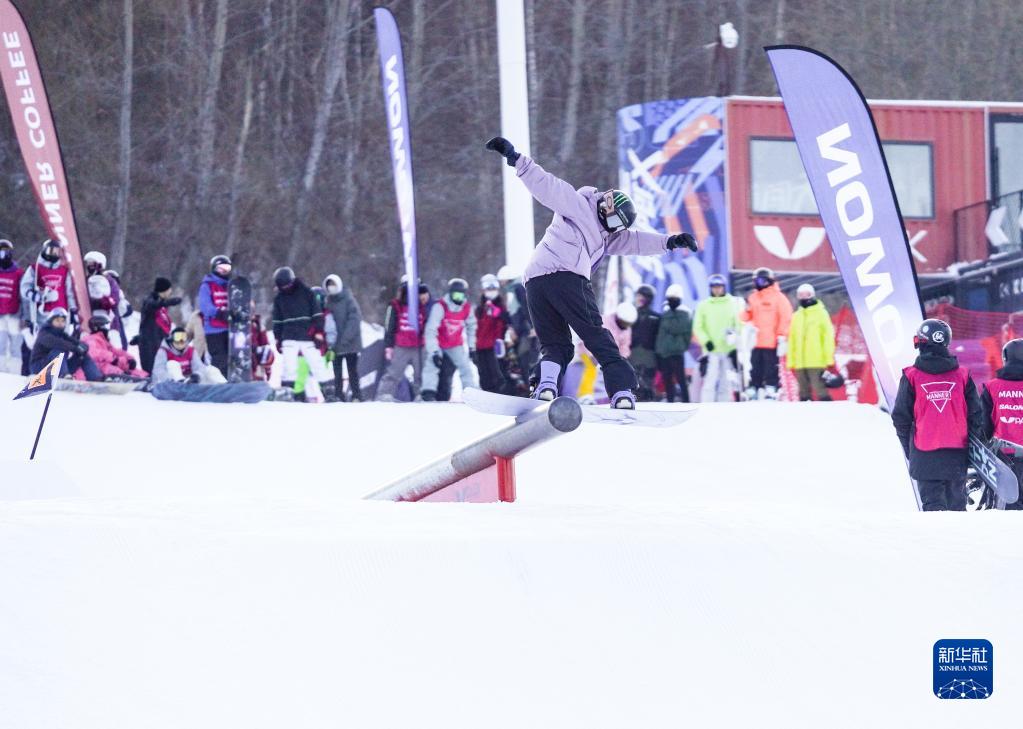 北京冬奧會(huì )單板滑雪男子大跳臺冠軍蘇翊鳴在V-PARK地形公園挑戰場(chǎng)地道具(12月10日攝)。