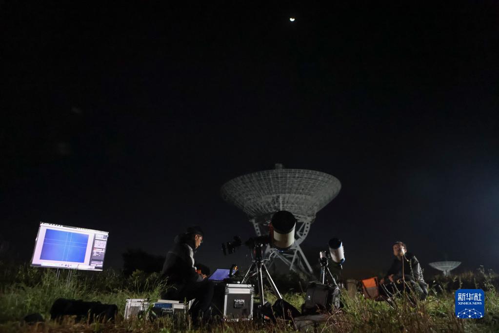 9月21日凌晨,在北京密云,劉博洋(左)調試好拍攝設備,等待中國空間站過(guò)境。