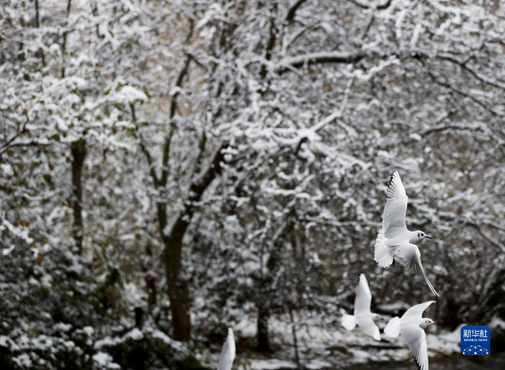 這是12月12日在英國倫敦綠園拍攝的飛鳥(niǎo)。