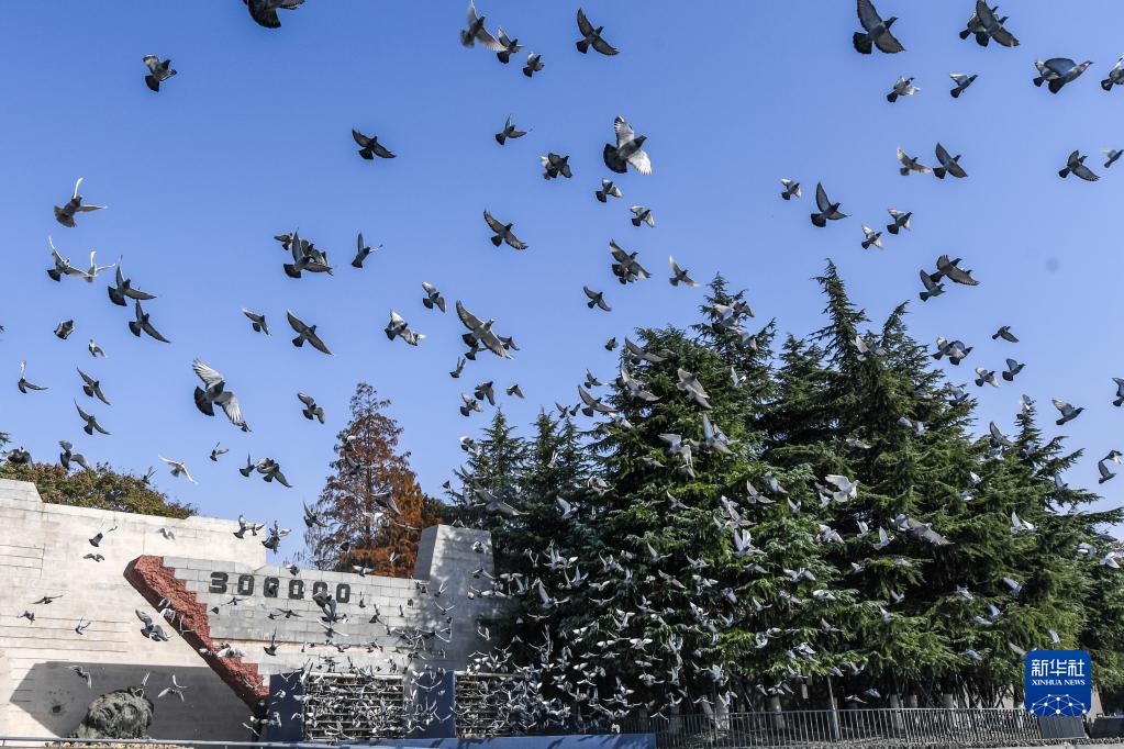 12月13日,南京大屠殺死難者國家公祭儀式現場(chǎng)放飛和平鴿。