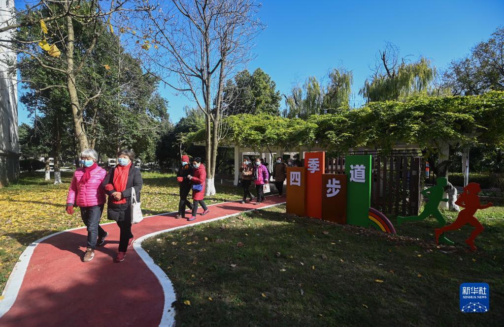 12月14日,居民行走在龍泉街道南白魚(yú)潭小區新建的健身步道上。
