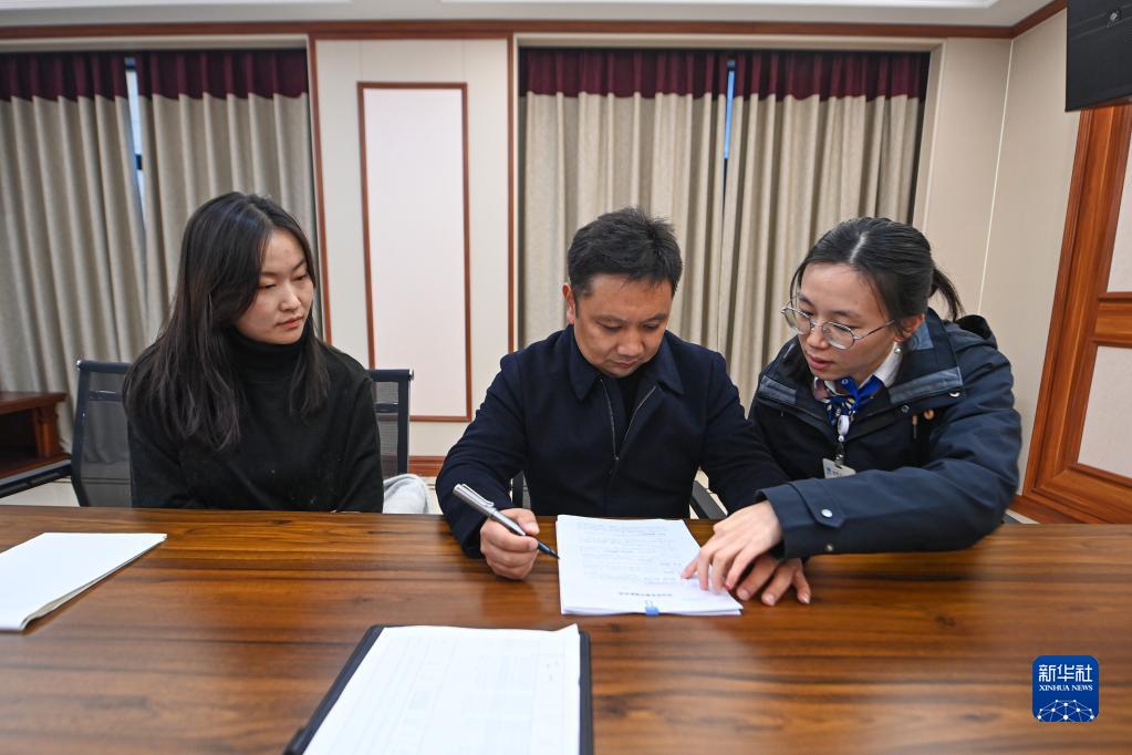 12月14日,陶朱街道駐企指導員(左)與諸暨農商銀行業(yè)務(wù)員(右)一同為企業(yè)主辦理業(yè)務(wù)。