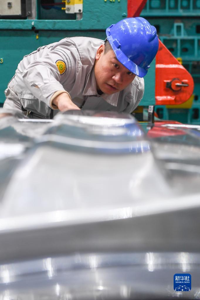 12月14日,在位于長(cháng)春的一汽解放汽車(chē)有限公司卡車(chē)廠(chǎng)沖壓車(chē)間,馮斌檢查零部件細節。