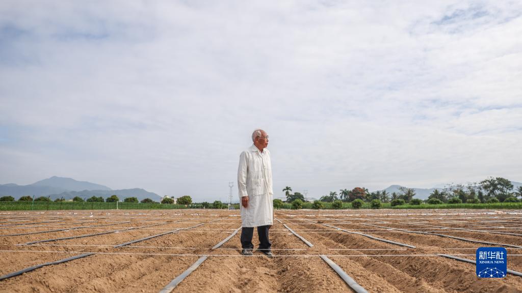 12月15日,玉米育種專(zhuān)家程相文站在三亞南繁科研育種基地一片待播種的地里。