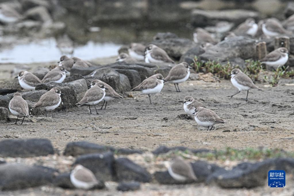 在海南儋州灣濕地拍攝的一群沙鸻(12月11日攝)。
