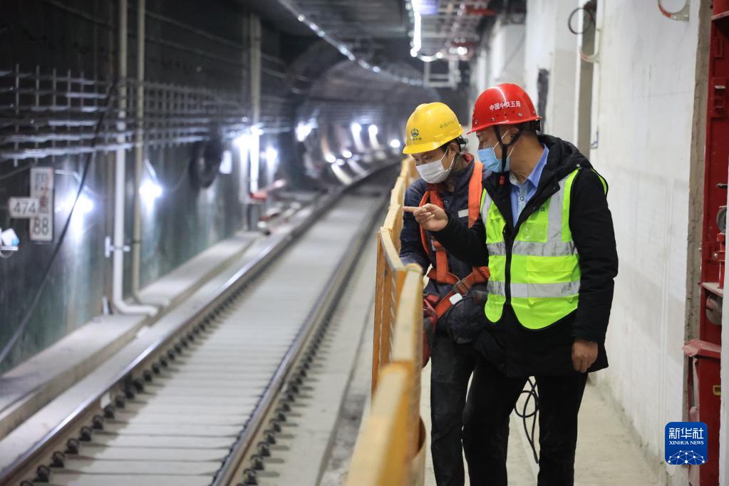 12月16日,中鐵五局建設者在貴陽(yáng)軌道交通三號線(xiàn)東風(fēng)鎮站內巡視檢查。