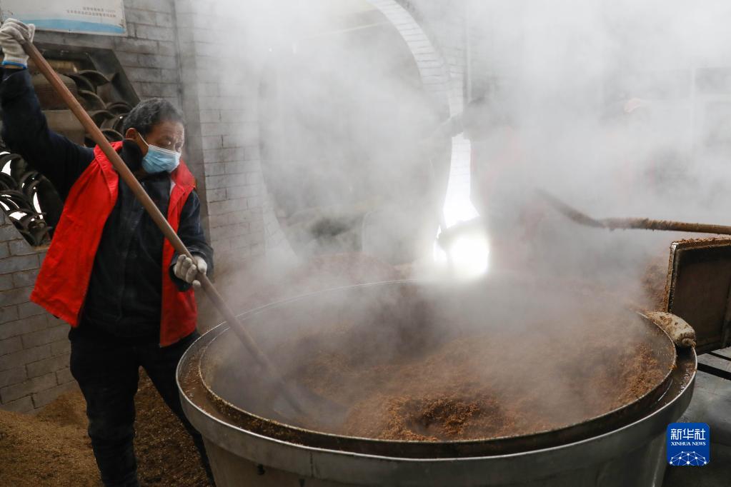 12月16日,工人在寶豐縣邢莊村一釀酒車(chē)間忙碌。