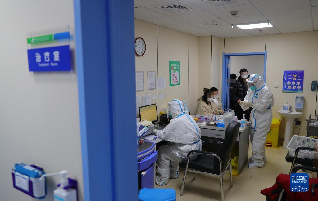 12月15日,在中國醫科大學(xué)附屬盛京醫院南湖院區發(fā)熱門(mén)診,值班醫生在為患者治療。
