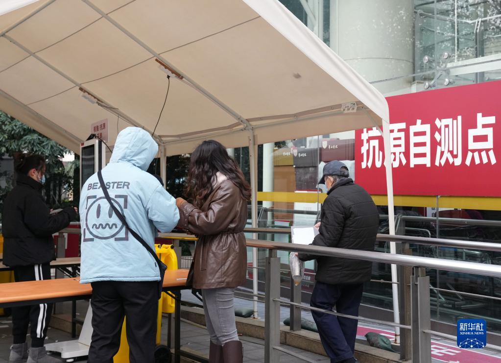 12月17日,在復旦大學(xué)附屬華山醫院,患者有序進(jìn)行抗原自測。
